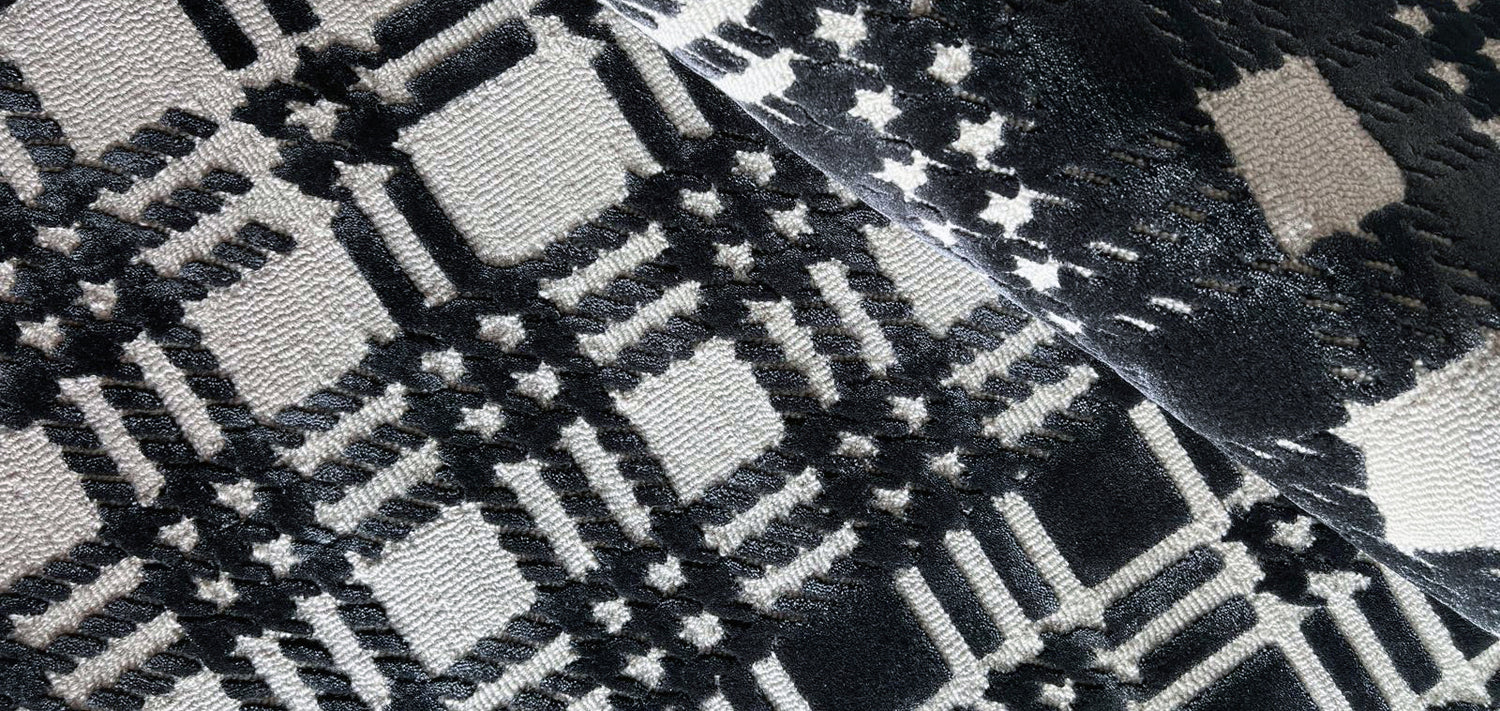 Volver seeks to reinvent this fashion iconic pattern with a new twist of pattern gradients, playing with the variations of the plaid elements. The rug also has architectural quality with horizontal and vertical orientation, making it easily suitable for modern minimalistic interiors. Volver preserves the textural quality of Chanel´s plaid textiles, combining both an open pile in bamboo silk and a loop pile in various woolen yarn shades.