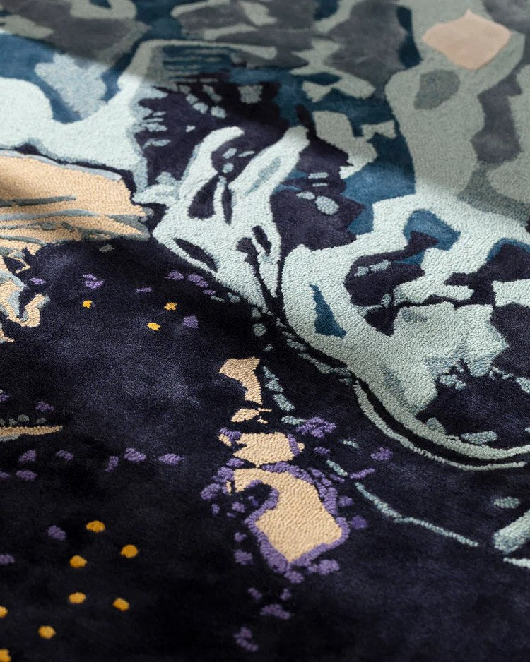 Volver takes the notion of a rug to art medium level with its new three rug art pieces in series On the Edge. Volver examines the vulnerable point of no return in exploring the effect of climate change on glaciers, forests and oceans.