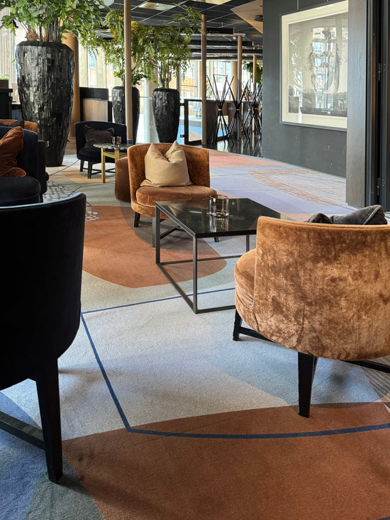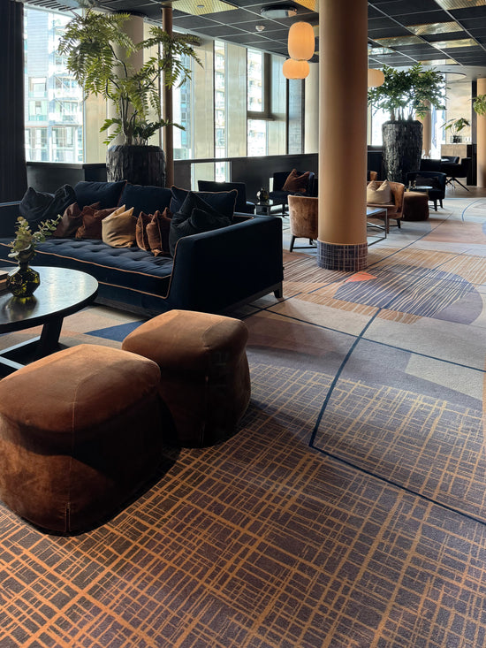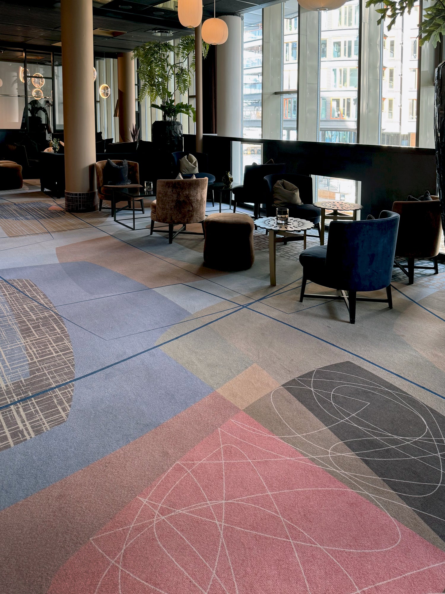 The rug design was developed in collaboration with interior architect Karianne Solem from Mellbye Arkitektur Interiør AS and references iconic Scandinavian design from the 1960s.