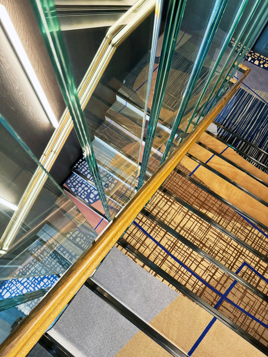 The Thief Hotel wanted to connect the entrance, bar, lounge on the first floor, and the staircase leading to the restaurant on the second floor into a cohesive and inviting experience of hospitality and comfort.