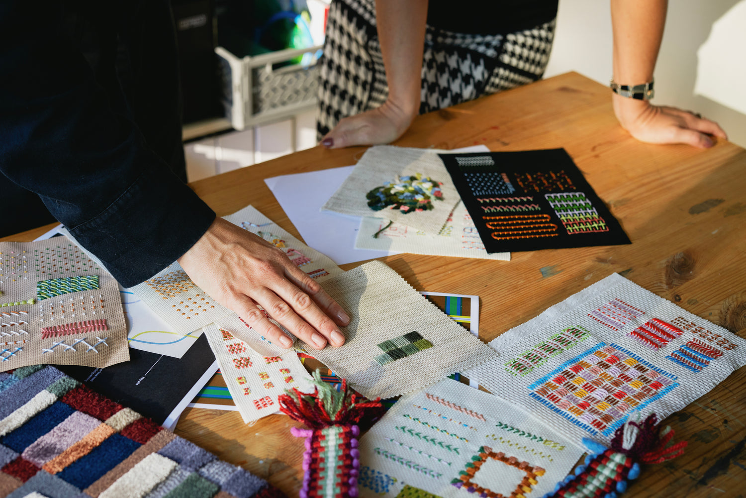 The development of the collection has been a meticulous process, involving hand-drawn sketches, vector-based illustrations, embroidered samples, paper models, and tufted prototypes. Through this fusion of research, craftsmanship, and artistic expression and close dialog with the founder of Volver Ksenia Stanishevski, Kristine has created a collection that is both deeply personal and universally resonant.