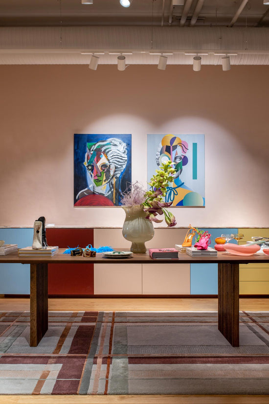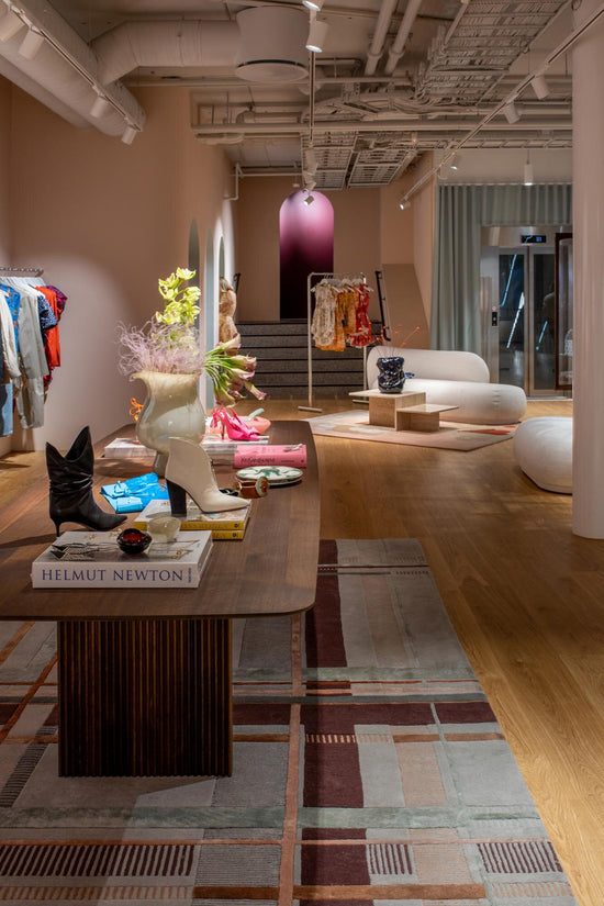 The five departments in the store are inspired by strong women, and therefore offer distinct experiences to the customers. Volver has contributed with rugs to create the atmosphere and a more personal style.