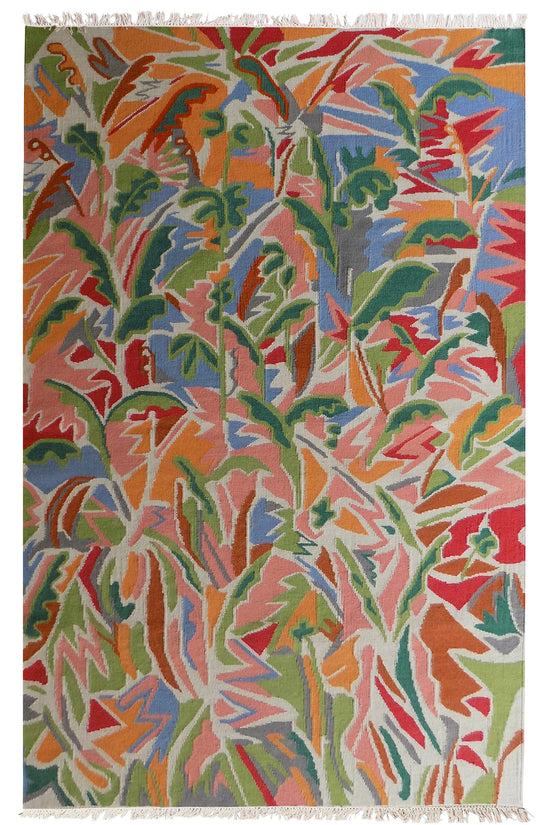 The motif is inspired by the vast field with wild flowers outside the artist's studio. The design is based on a full-size painting. The rug is made of numerous color shades to keep the vibrancy and dynamics of the brush strokes.