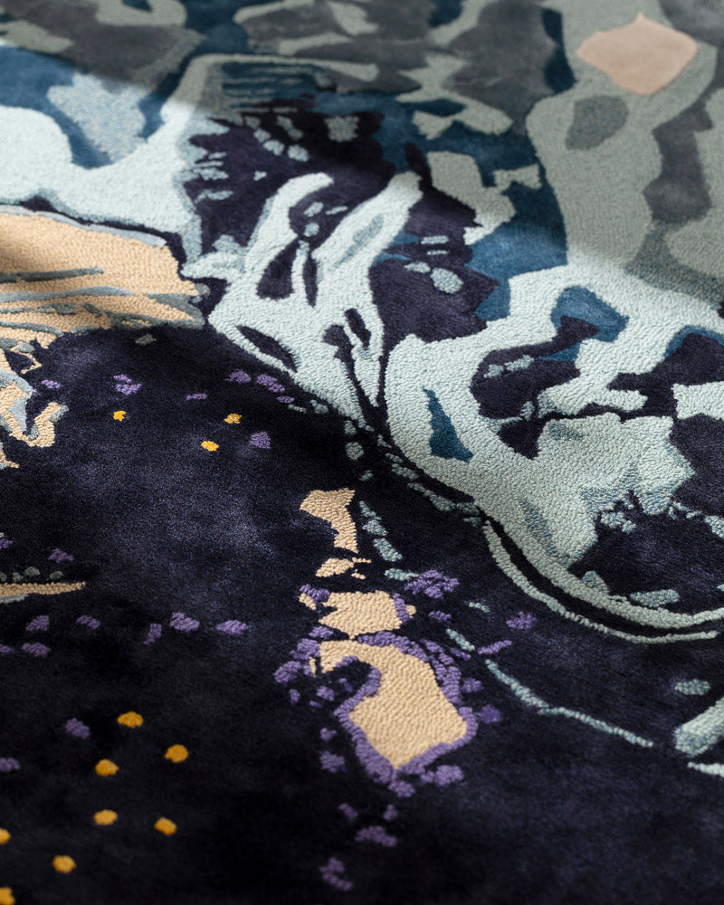 Volver takes the notion of a rug to art medium level with its new three rug art pieces inseriesOn theEdge.Volver examines the vulnerable point of no return in exploring the effectof climate change on glaciers, forests and oceans.