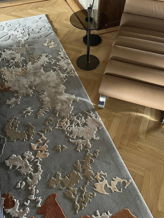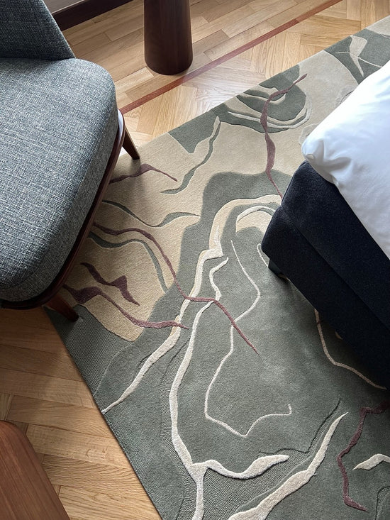 Volver has developed six custom carpets for the suite, inspired by Norwegian nature. The carpets for the bedrooms share the same flowing pattern but in different color combinations, adapted to the furnishings. All carpets are hand-tufted in pure New Zealand wool and viscose, with 3D carving to give the suite an exclusive, high-quality feel.
