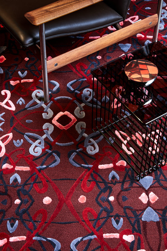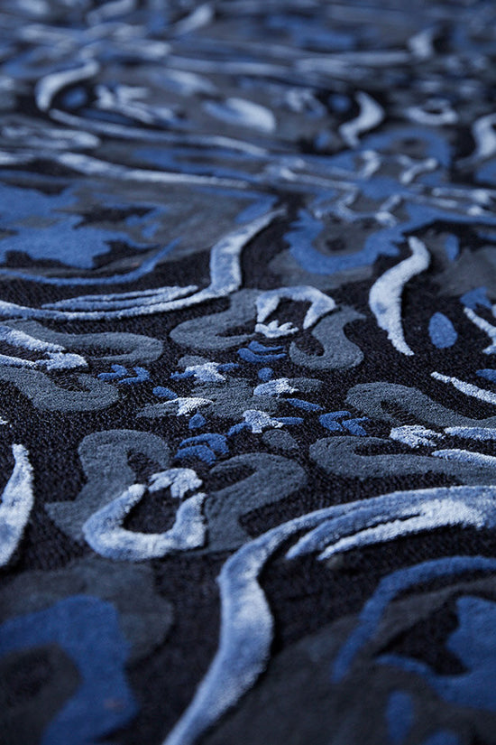 In their design discussions, Yorgo and Ksenia, challenged the limits of art, design and craft. The original sketches are intricate highly detailed abstract compositions inspired by the London graffities. They are organic, wild and dark. These qualities were translated and modified to create exquisite luxury rugs with richness of textures, elevations and colors.