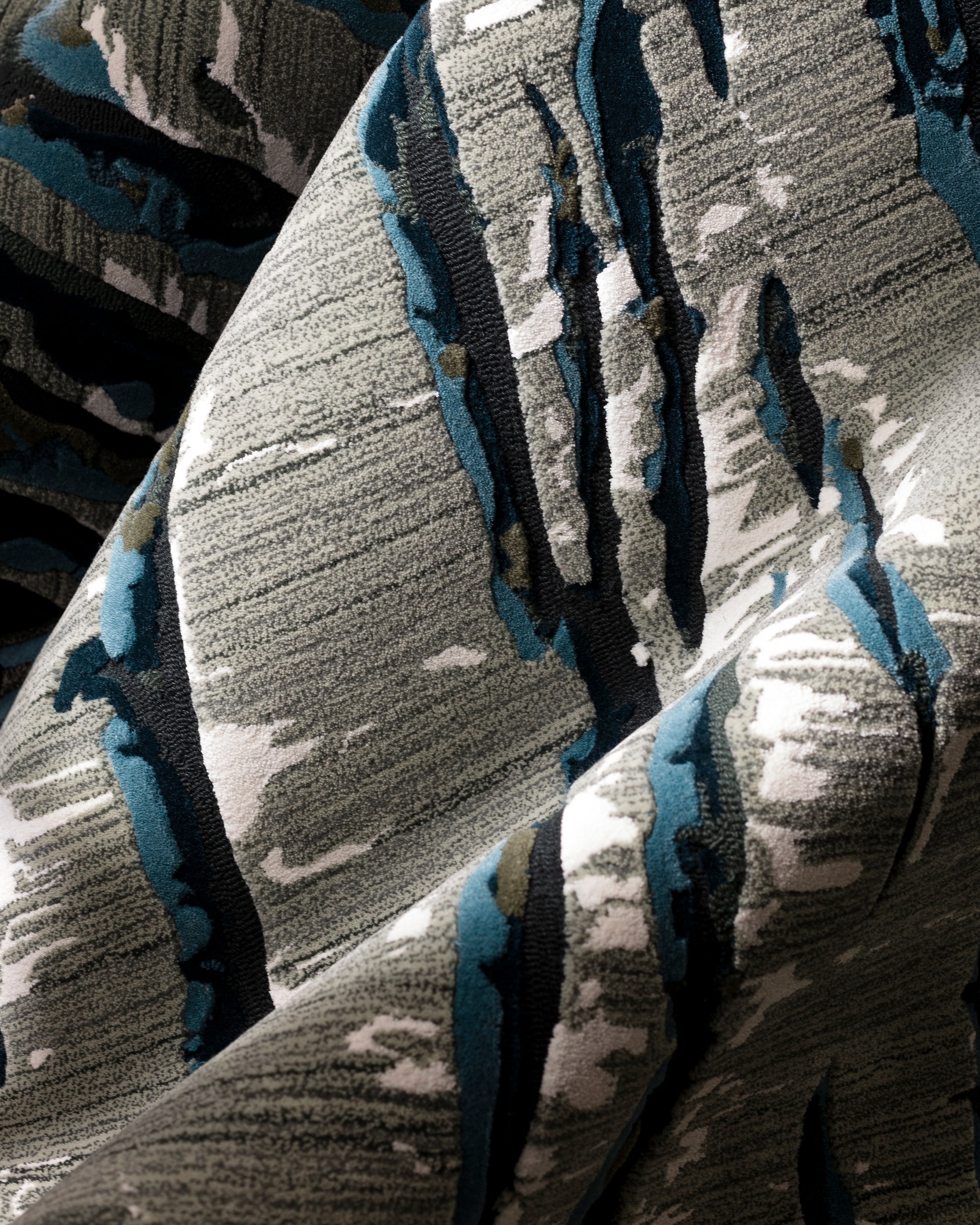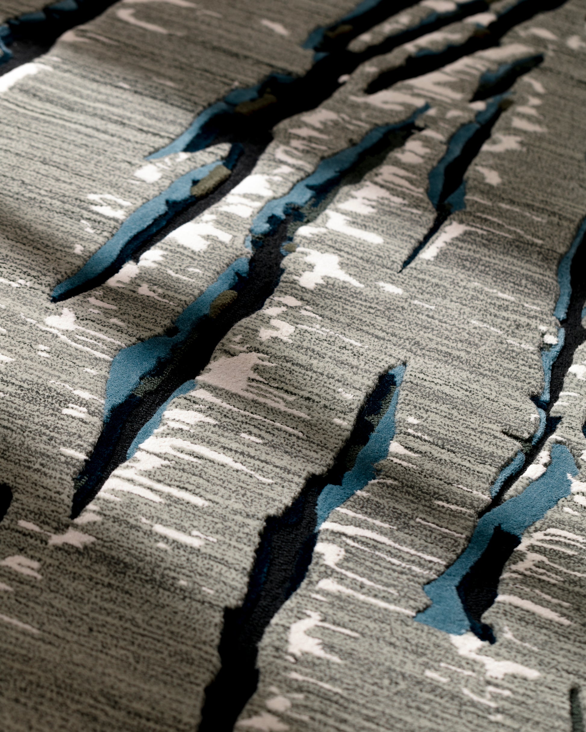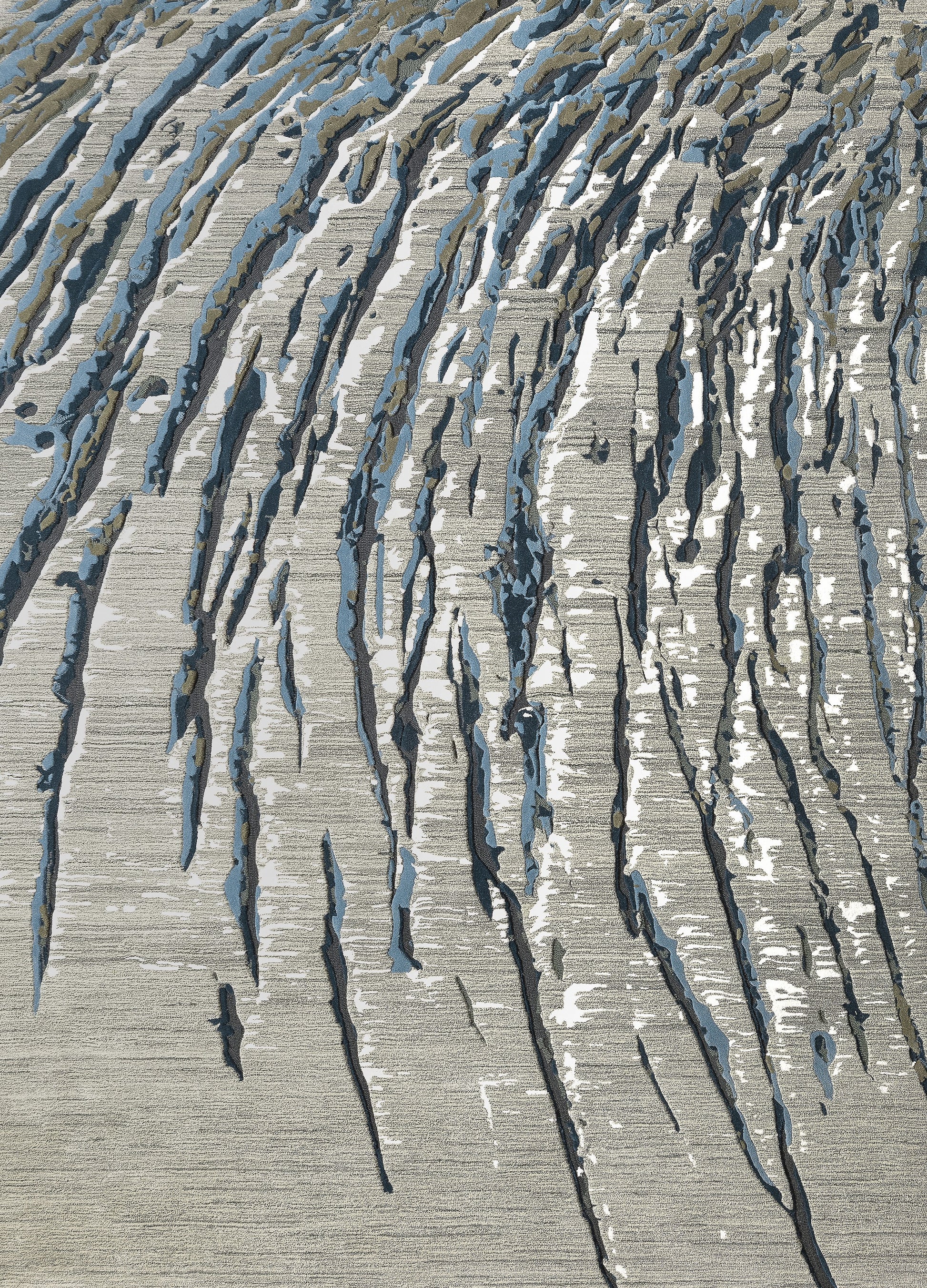 Christian art photograph of a Norwegian glacier Black ice is translated into tactile rug art.