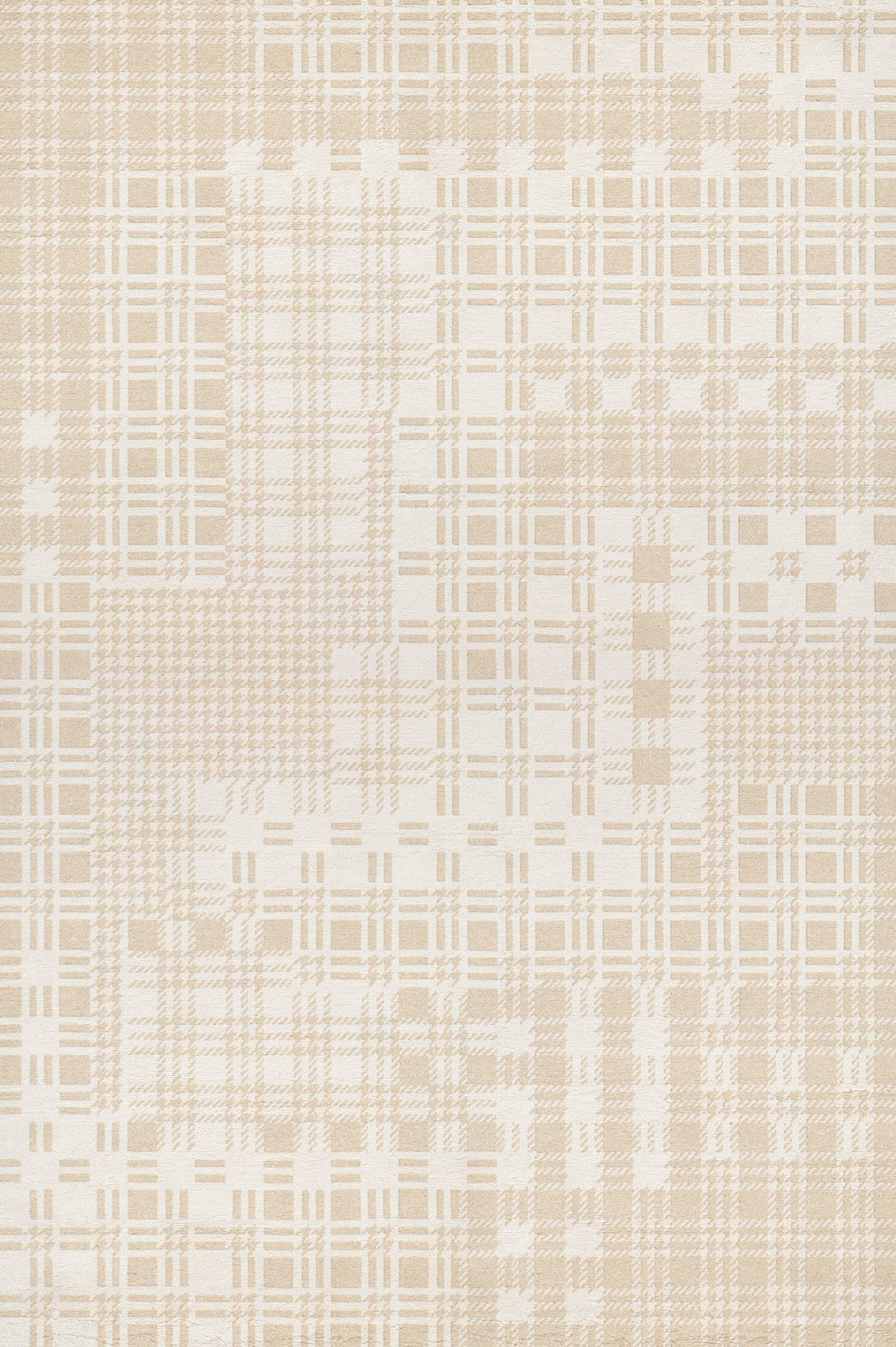 Plaid design interprets an iconic fashion pattern of plaid, modernized by Chanel, into a modern irregular, and elegant rug.